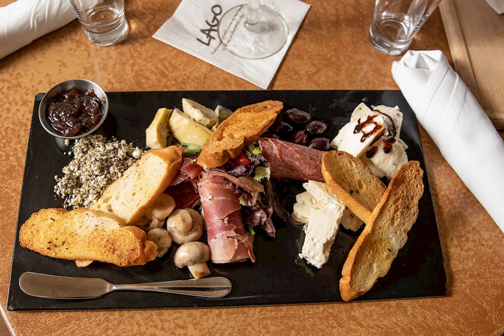 With a stunning setting along the water at Bay Point, Lago is a premier dinner location for a family gathering, romantic date night, girls’ night out, or a special celebration. Cozy up at table inside the Old World-inspired dining room, or when the weather is nice, escape to the waterfront patio to catch an epic sunset and then dine under the stars. Savor a mix of rustic Italian specialties, decadent pastas, fresh seafood, and hand-cut steaks.